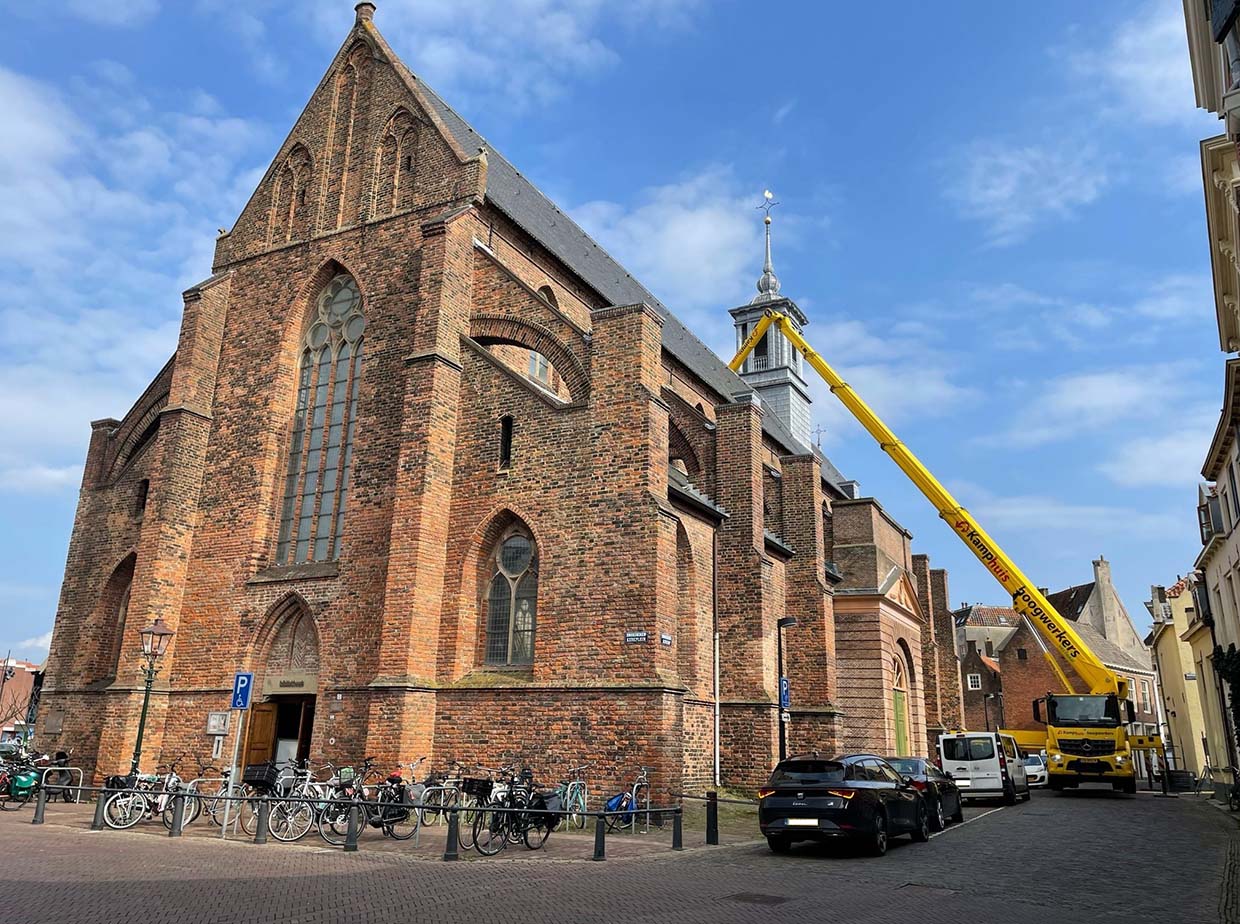 Schilderwerk Broederenkerk met een 70 meter hoge vrachtwagenhoogwerker